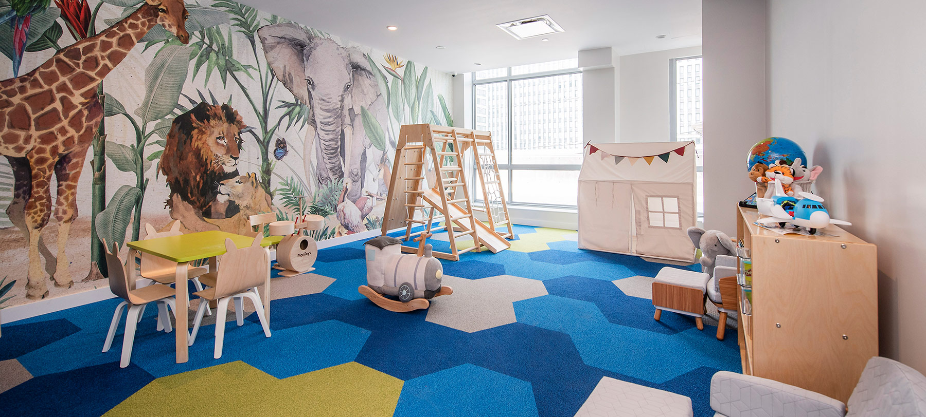Leasing a home at Alvista Rise includes an entire building’s worth of benefits. A fitness center worthy of a private club. A fully equipped children’s playroom. An art room. A music room. A computer room and business center, with WiFi available in targeted common areas. Enjoy relaxing time with friends on our rooftop terrace and outdoor lounge. Alvista Rise is a 24-hour-doorman building with a secure package room, so deliveries can be scheduled at your convenience.